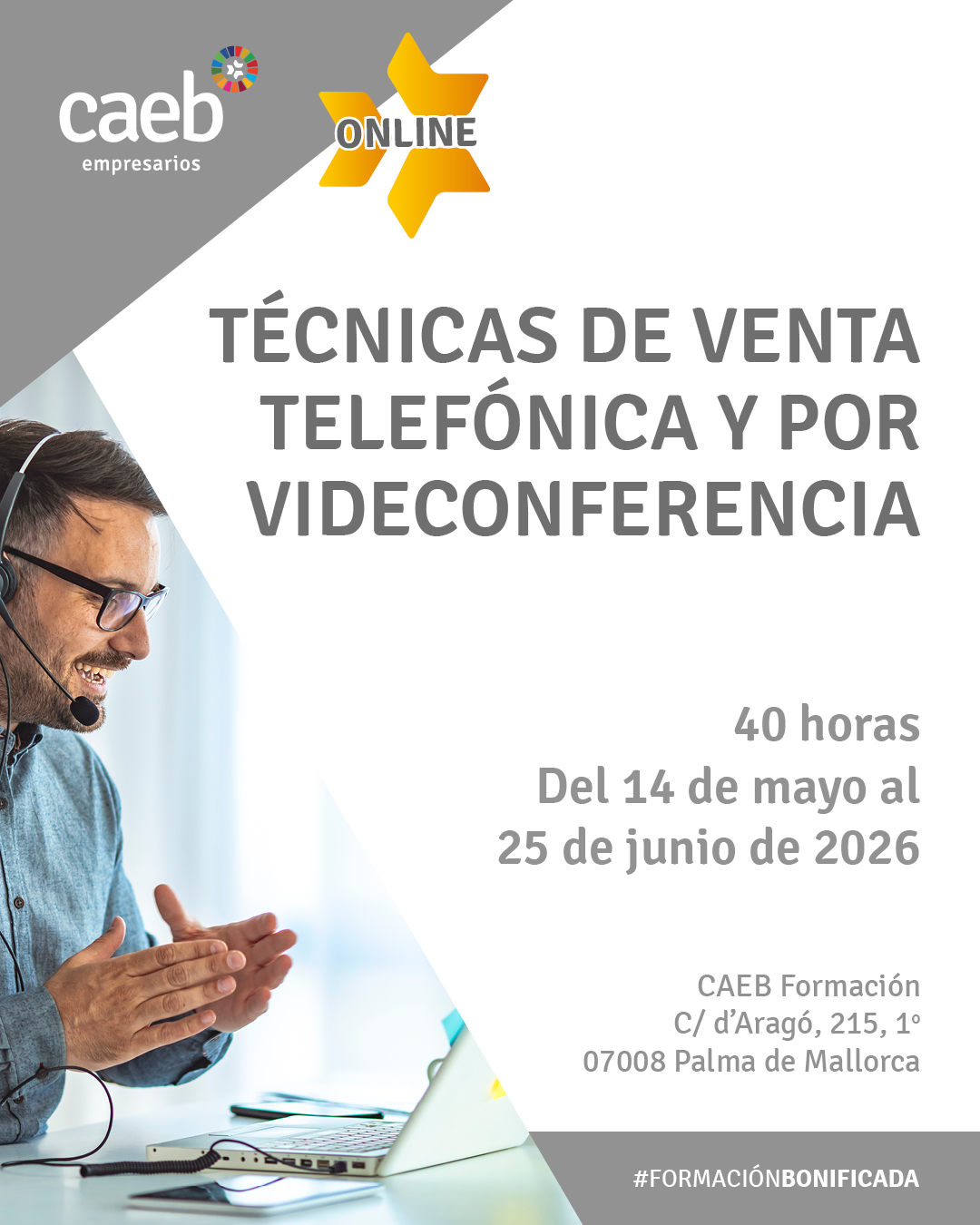 La cuota de inscripción es de 285 € para asociados a CAEB, desempleados y a partir del 2º inscrito de la misma empresa. 300 € en el resto de los casos. La formación es 100 x 100 bonificable a través del sistema de bonificación de la Seguridad Social.*