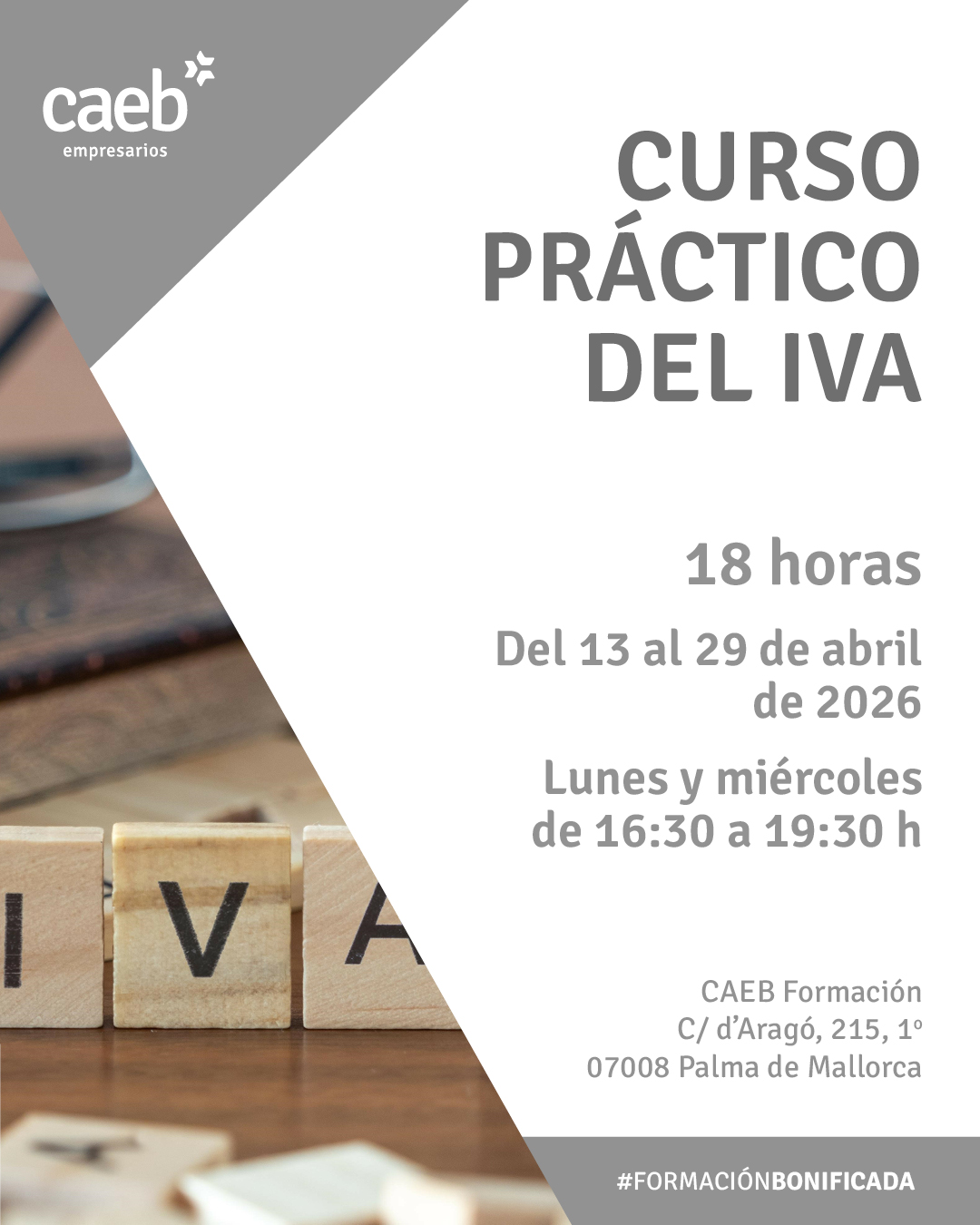 Curso Práctico del IVA. Presencial. 95% Bonificable