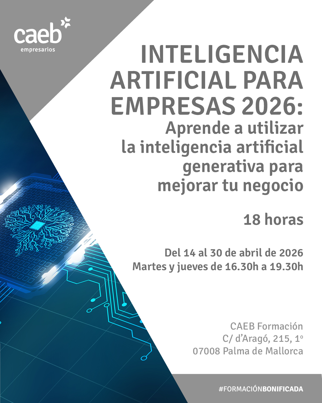 Inteligencia Artificial para empresas 2026: Aprende a utilizar la inteligencia artificial generativa para mejorar tu negocio. Presencial. 100% Bonificable